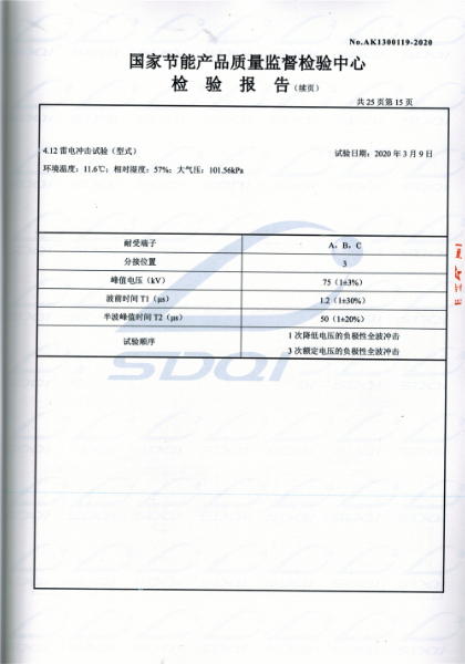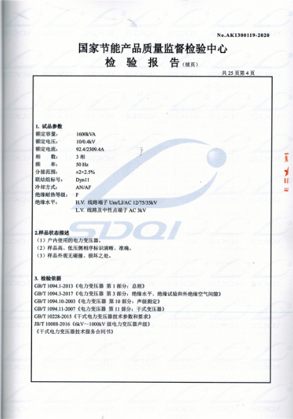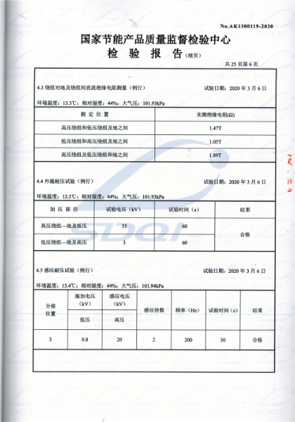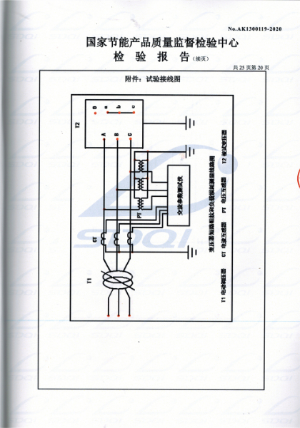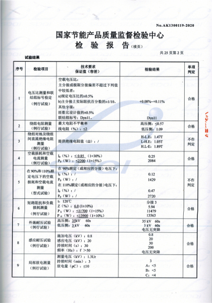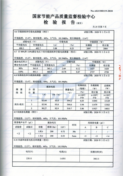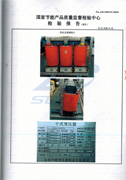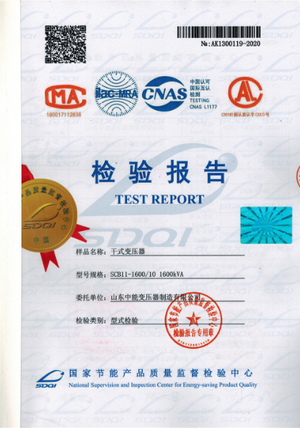 國家節(jié)能產(chǎn)品質(zhì)量監(jiān)督檢驗中心 查詢編號:AK1300119 查詢備案證書號:GJJN-B-K2000120 批準(zhǔn)日前:2020-03-12 公司名稱:山東中能變壓器制造有限公司